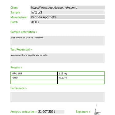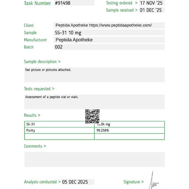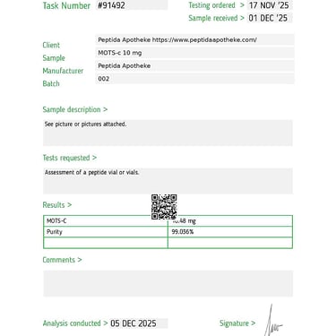 Alle unsere Peptide durchlaufen strenge Tests, um sicherzustellen, dass sie die strengsten Qualitäts- und Reinheitsstandards erfüllen